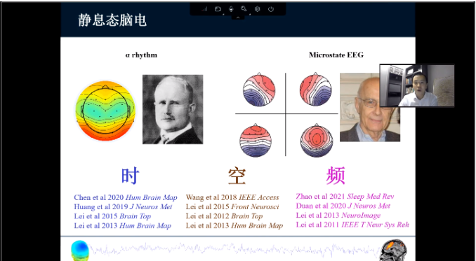 我們在時間分析主要是關注一些特征的腦電波,空間分析比如說微狀態,主要關注四個固定的地形圖,以及空間的源定位,還有就是頻譜分析,快速傅里葉變化等。這三個部分,我們在西南大學從2011年開始十年的工作都有一些涉及。