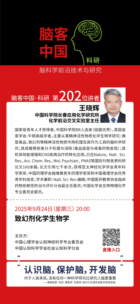 【直播預告】9月24日20點:王曉輝 | 致幻劑化學生物學