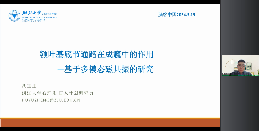2024年5月15日晚20點,浙江大學百人計劃研究員,博士生導師胡玉正教授作為腦客中國科研第142位講者為大家帶來主題為《額葉基底節通路在成癮中的作用--基于多模態磁共振的研究》的報告。以下內容節選自直播視頻: