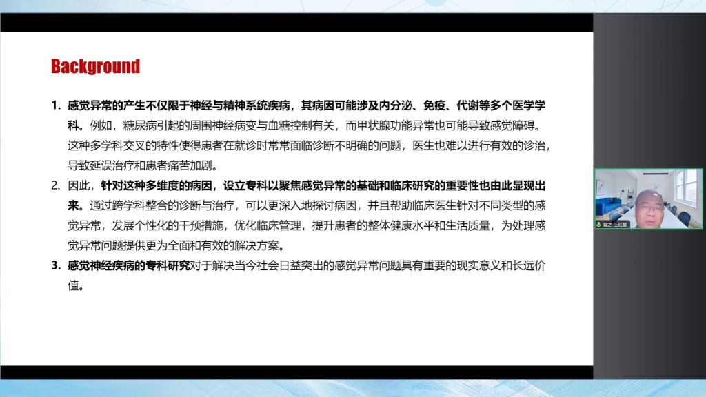 2024年10月9日晚20點(diǎn),首都醫(yī)科大學(xué)宣武醫(yī)院博士生導(dǎo)師王紅星教授作為腦客中國(guó)科研第162位講者為大家?guī)?lái)主題為《感覺(jué)神經(jīng)病學(xué)—— 一個(gè)新的神經(jīng)病學(xué)亞專(zhuān)業(yè)》的報(bào)告。以下內(nèi)容節(jié)選自直播視頻: