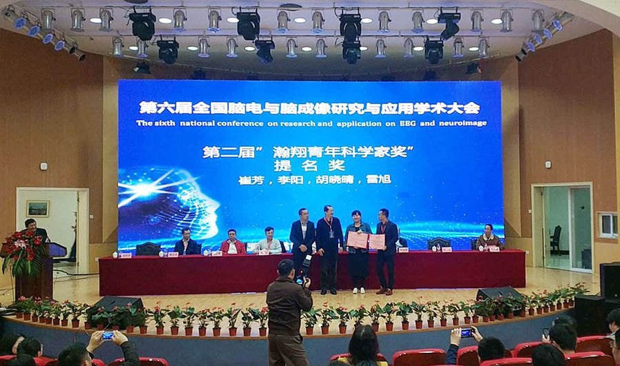 作為此屆會議的頂級贊助商,深圳市瀚翔生物醫療電子股份有限公司不僅對會議進行支持,還出資贊助了第二屆“瀚翔青年科學家獎”項目,為推進心理認知行業的不斷向前發展做出了自己的一份努力。繼首屆“瀚翔青年科學家獎”項目于去年第五屆腦成像與腦電研究與應用研討會成功舉行后,本屆不負眾望,如期而至。經過評委投票決議,中科院心理所古若雷、西南大學袁加錦、華東師范大學庫逸軒獲得“瀚翔青年科學家獎”,深圳大學崔芳、北京航空航天大學李陽、香港大學胡曉晴、西南大學雷旭獲得“瀚翔青年科學家獎”提名獎,并由深圳瀚翔教育銷售與服務事業部總監張新剛先生為以上獎項獲得者頒獎。