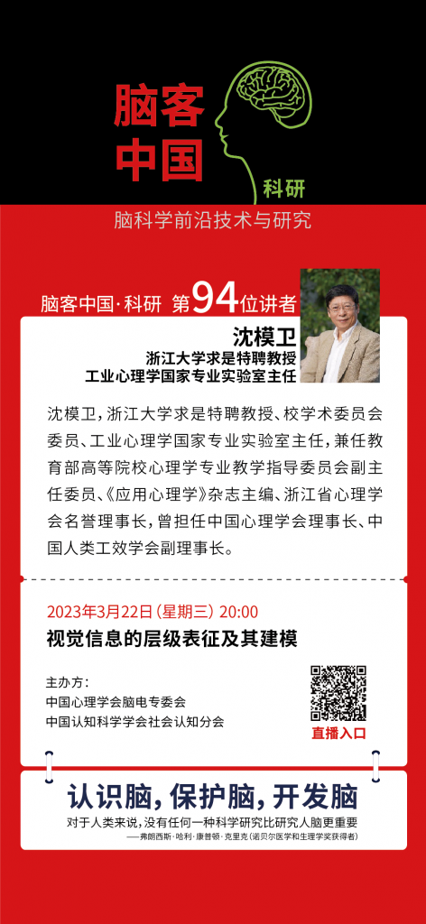 【直播預告】 本周三晚20點 沈模衛:視覺信息的層級表征及其建模